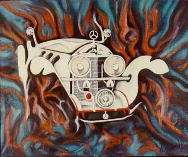 The model of the car was a Mercedes once owned by Eva Braun. I also did a Prisma color version of this car, which was owned at the time by Mr. Tom Barrett of Scottsdale, Arizona. Painting is owned by Mr. Robert Meyers, Carrollton, Texas.